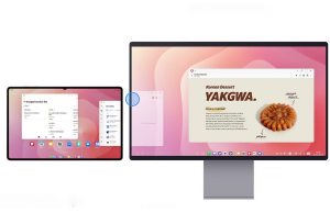 Samsung DeX Extended Mode mengubah Galaxy Tab S11 menjadi workstation portabel yang fungsional: layar eksternal menampilkan antarmuka desktop DeX penuh, sementara layar tablet tetap...