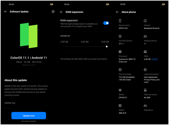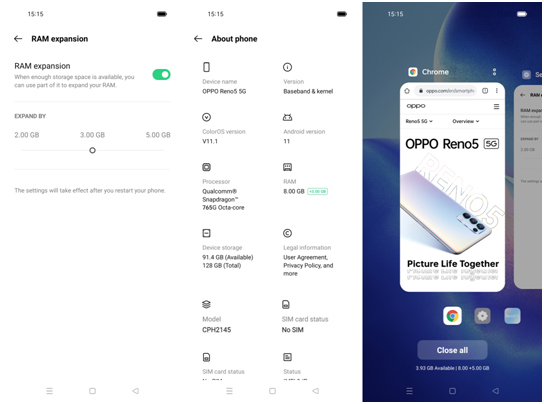 Setelah fitur ini aktif, pengguna dapat memeriksa detail perluasan RAM virtual melalui informasi mengenai perangkat atau pada recent task screen. Setelah OPPO A74 4G, perangkat yang memiliki fitur ini melalui pembaruan perangkat lunak secara OTA (Over The Air) selanjutnya adalah Reno5 4G dan Reno5 5G pada bulan Juni mendatang.