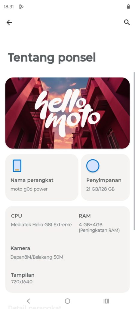 Tak sekadar baterai besar, Motorola G06 Power juga sudah mendukung teknologi AI pada kameranya. Lewat integrasi dengan Google Photos, pengguna dapat memanfaatkan fitur seperti Magic Editor, Magic Eraser, Photo Unblur, hingga Portrait Blur yang memastikan foto yang dihasilkan jadi lebih tajam dan bebas dari objek pengganggu. Tidak berhenti di sisi software, perangkat keras kameranya juga sudah didukung oleh kamera 50MP plus sensor ambient light 2 in 1 untuk fokus yang lebih cepat dalam berbagai kondisi pencahayaan.
