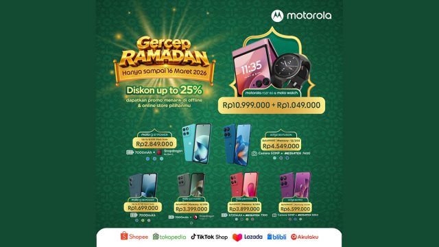Menjelang Hari Raya Idul Fitri 2026, Motorola Indonesia menghadirkan program promo spesial bertajuk “Gercep Ramadan.” Melalui program ini, konsumen bisa mendapatkan potongan harga hingga 25% untuk berbagai smartphone Motorola yang tersedia hingga 16 Maret 2026.