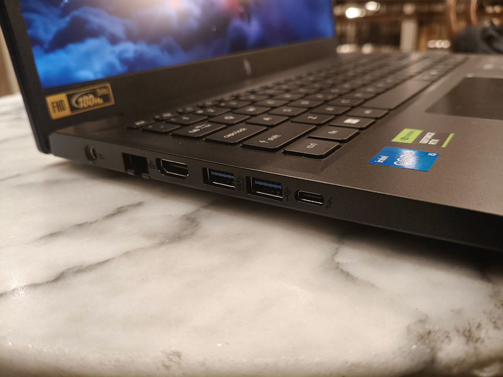 Bagian port juga menyempurnakan pengalaman penggunaan. Ketersediaan Thunderbolt 4 sangat membantu pengguna profesional yang memakai SSD eksternal, monitor resolusi tinggi, atau docking port. HDMI 2.1 siap untuk keperluan multi-display. Port USB-A tersedia untuk perangkat standar seperti mouse, keyboard, dan storage. Ethernet LAN tetap disertakan untuk pengguna yang ingin koneksi stabil saat bermain online. Semuanya hadir tanpa harus membeli dongle tambahan, sesuatu yang justru semakin jarang ditemukan di laptop modern.