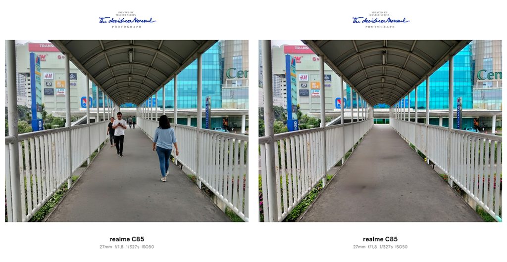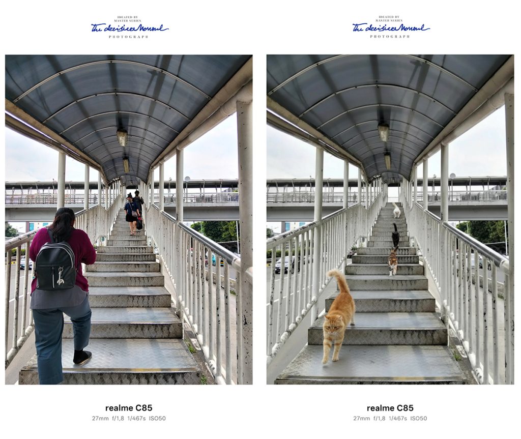 realme C85 mengusung setup kamera belakang 50MP f/1.8 dengan PDAF, ditemani sensor AI depth, serta auto mode andalan. Kamera utama ini menawarkan hasil yang tajam dan detail di kondisi terang, serta performa stabil di malam hari dengan mode pengolahan AI. Kamera depan 8MP juga memadai untuk selfie sehari-hari dan video call.