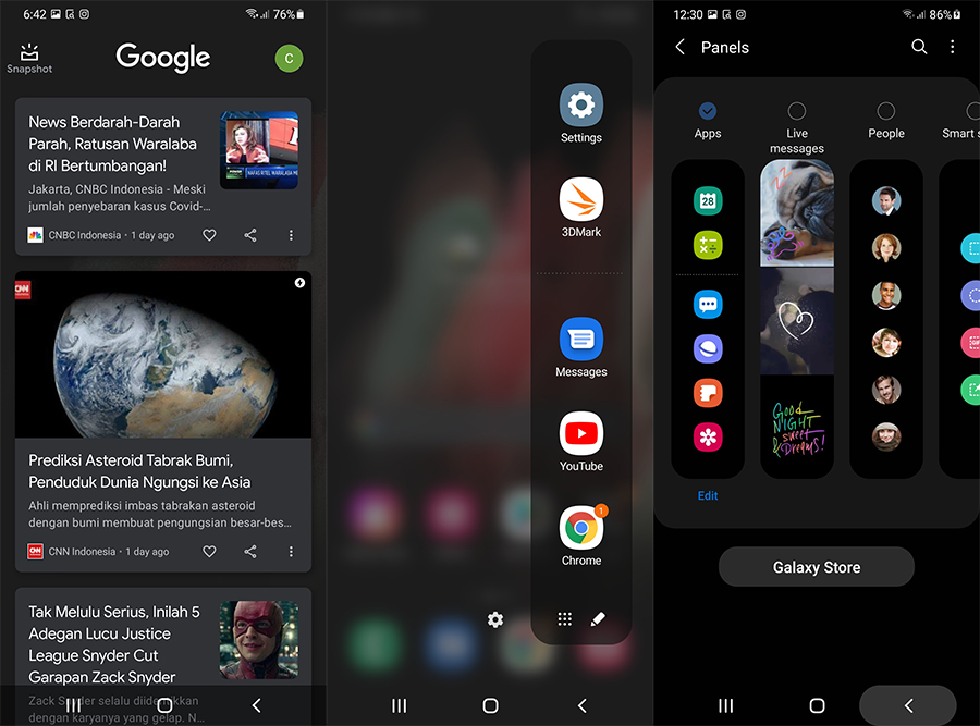 Sebagai contoh Kami mengedit video dengan banyak layer menggunakan aplikasi CapCut, sambil bolak-balik membuka aplikasi editor foto Picsay dan Snapseed, dan kemudian berpindah lagi ke CapCut, semuanya dapat dilahap dengan mudah. Tak heran, karena kinerjanya ditopang RAM 12GB dan chipset paling premium Samsung.