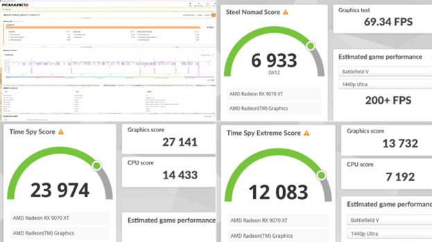 Sementara itu, pada benchmark ray tracing melalui Port Royal, performanya tetap kompetitif, menunjukkan bahwa GPU Radeon generasi terbaru mampu menghadirkan efek visual realistis tanpa mengorbankan stabilitas.